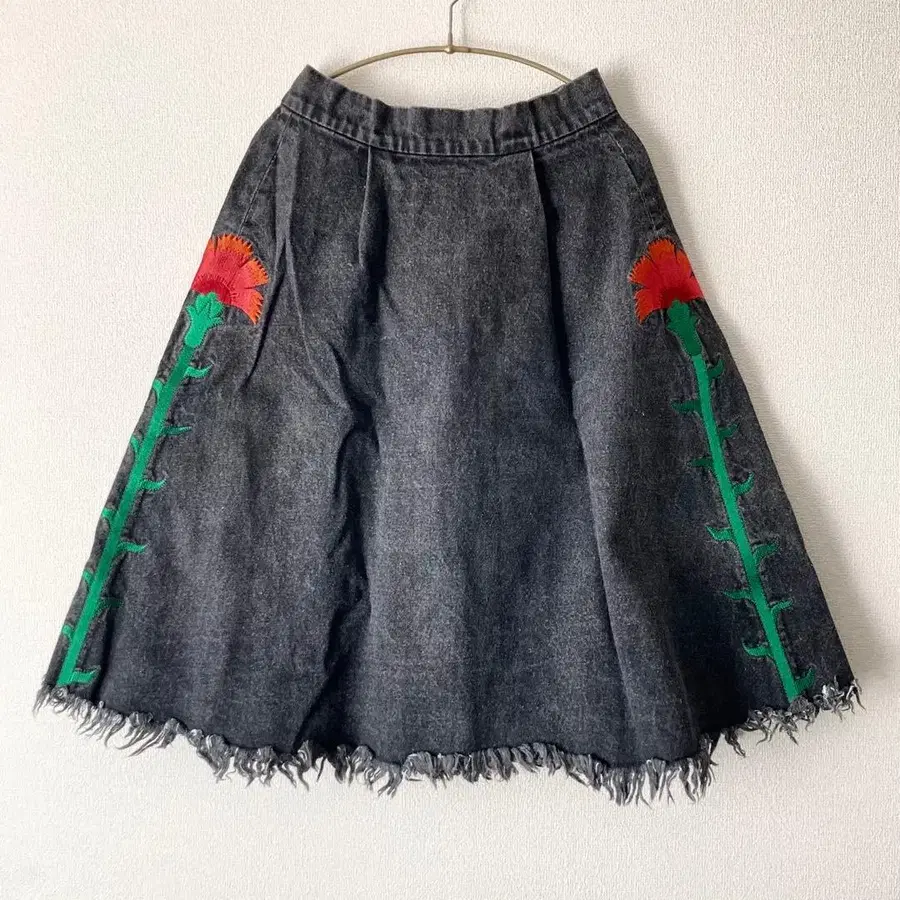 [ 새상품급 ] PAMEO POSE 데님 스커트 블랙 꽃무늬 자수
