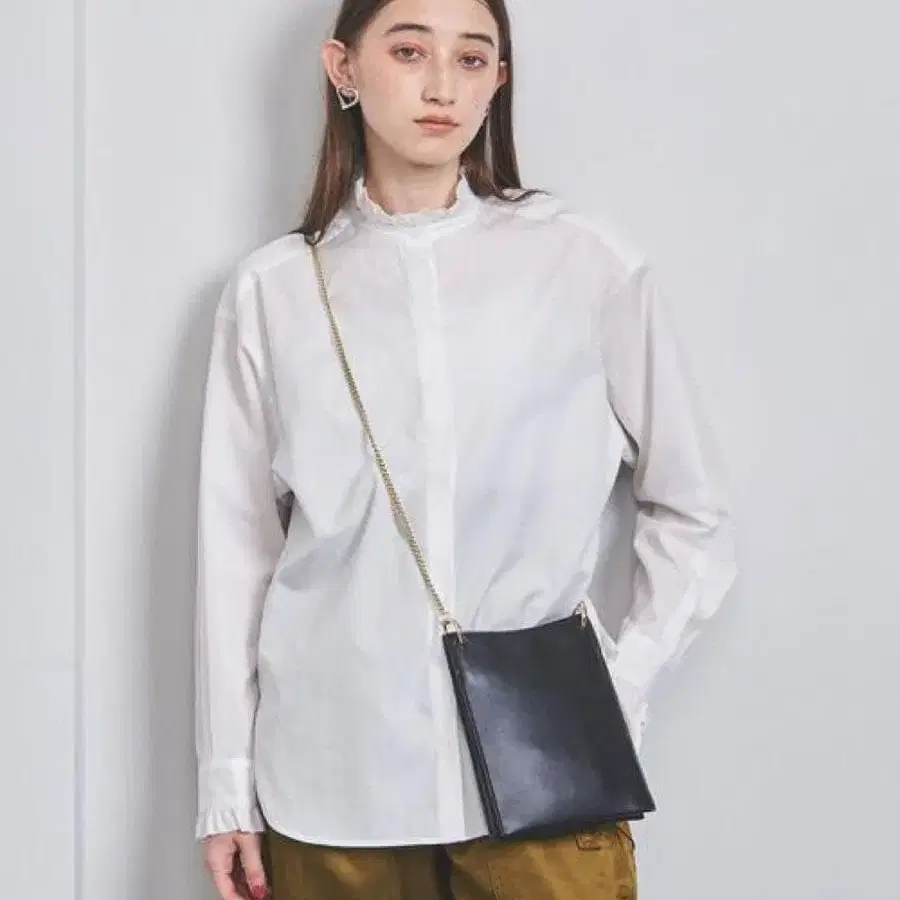 UNITED ARROWS 프릴 옷깃 긴팔 셔츠 화이트