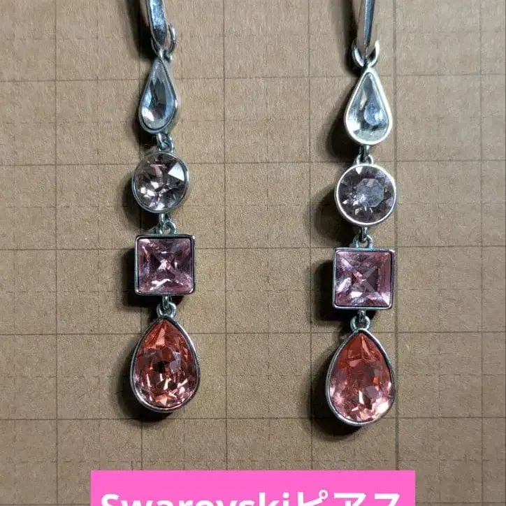 [ 새상품급 ] Swarovski 핑크 스톤 롱 드롭 귀걸이