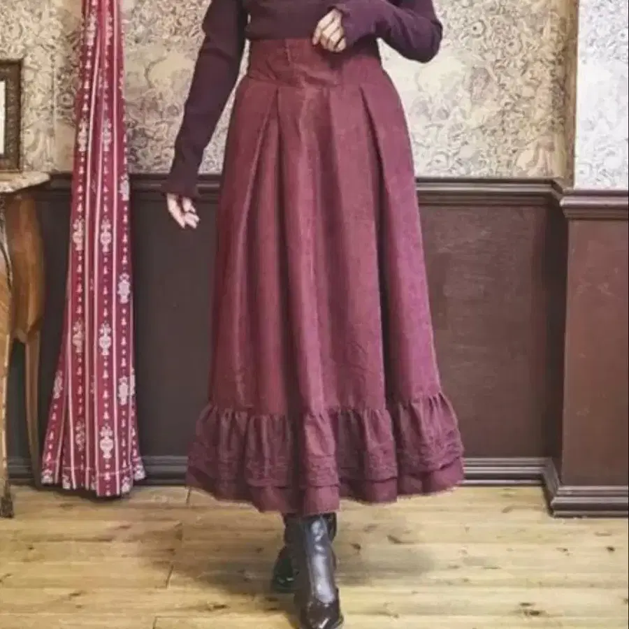 시마무라 x 클라로리 쿠루미 노엘 드 메모와르 스커트 와인 레드