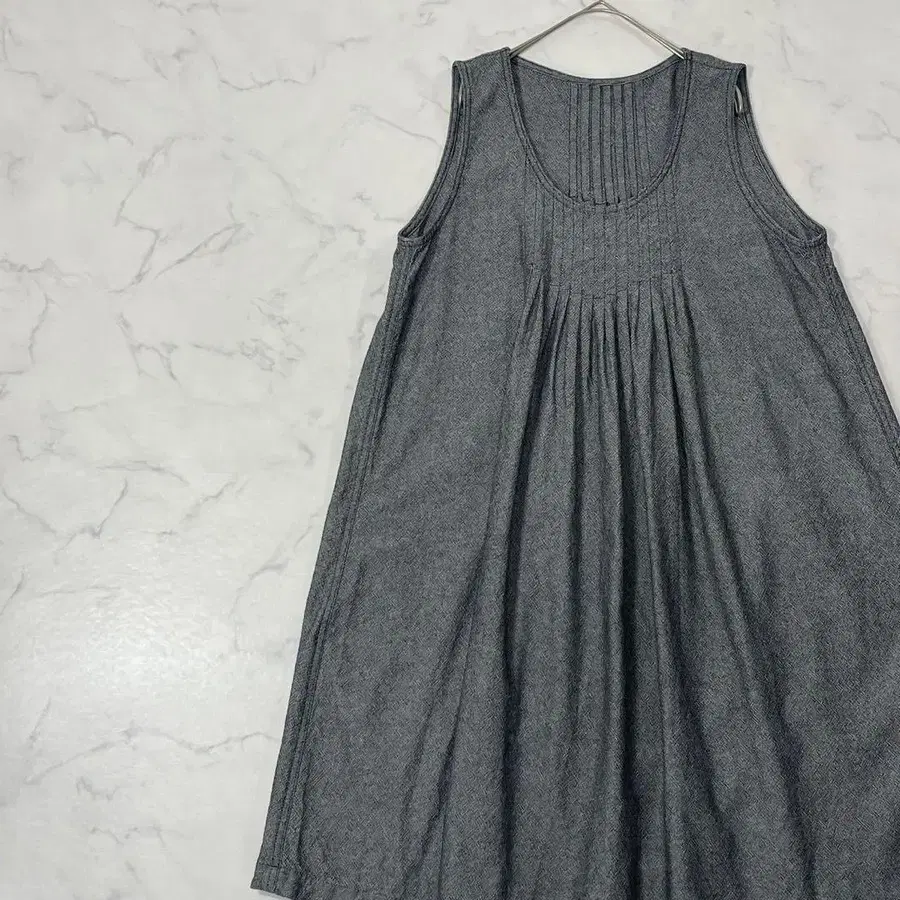 빅 사이즈 원톤 핀턱 크루넥 코튼 슬리브리스 무릎 기장 원피스