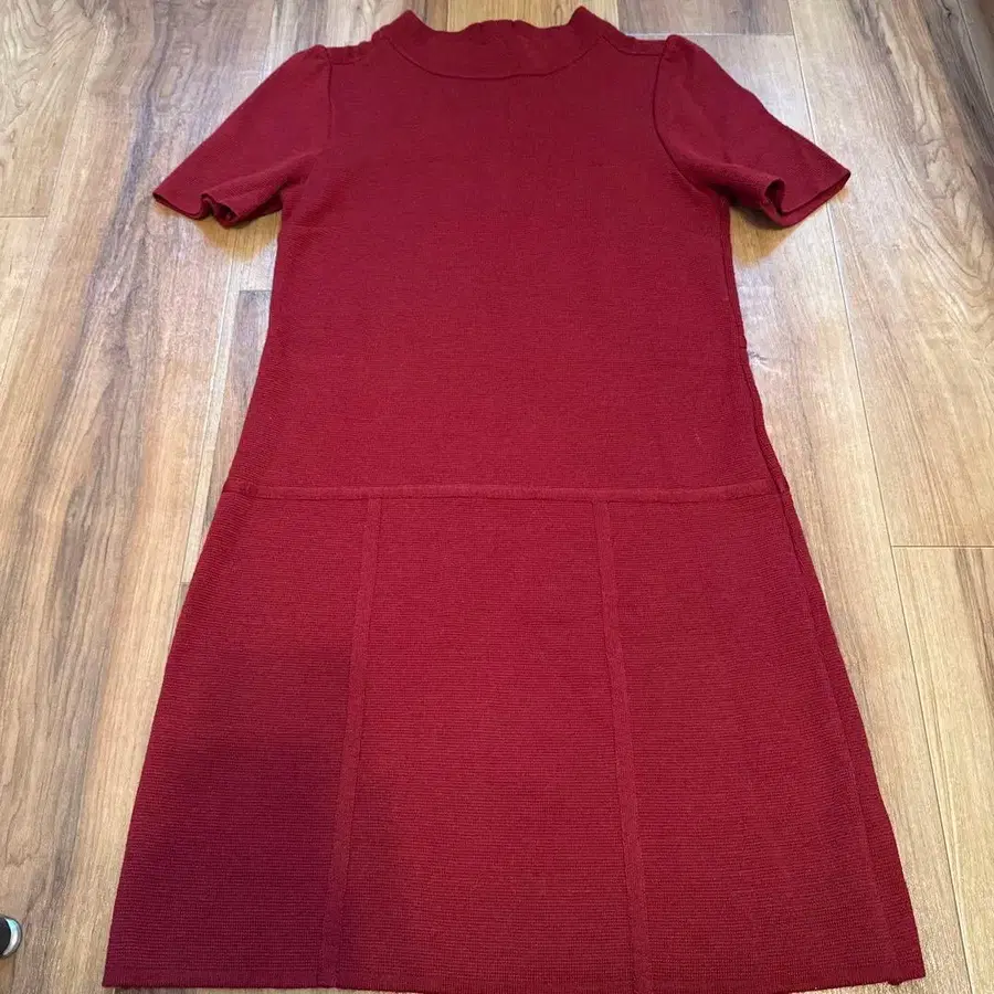 버건디 반팔 무릎 기장 니트 원피스