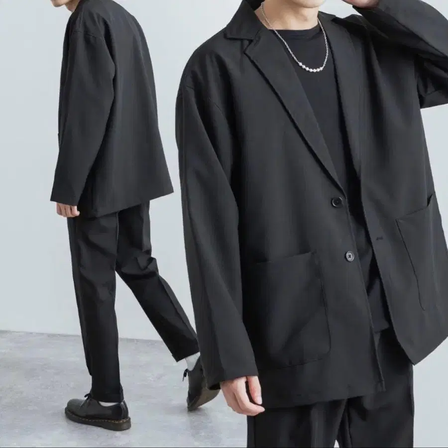 오버 사이즈 폴리 테이퍼드 테일러드 자켓 & 테이퍼드 팬츠 상하의 세트