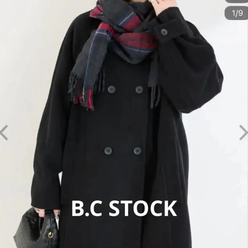 B.C STOCK 소프트 비버 W 버튼 박스 미들 코트 블랙