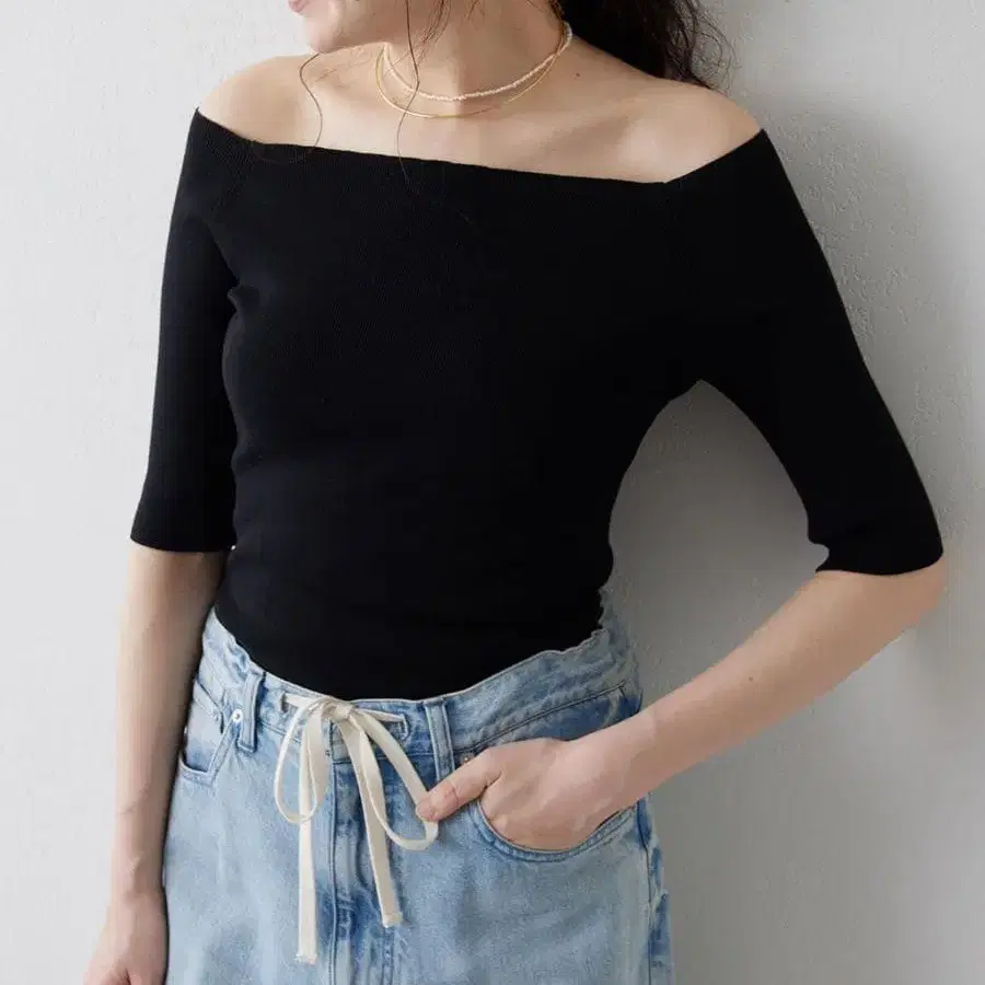 윔 가젯 [THE PAUSE] 오프숄더 하프 슬리브 풀오버