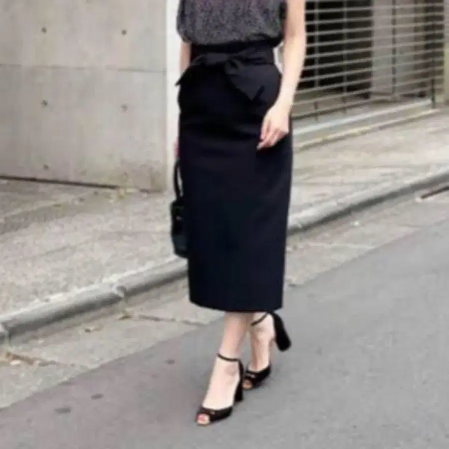 새상품급 엠프리미어 블랙 허리 리본 롱 타이트 스커트