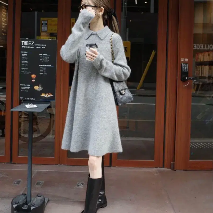 Mila Owen 카라 부착 플럼 니트 미니 원피스