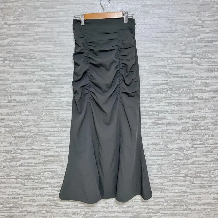 me+em select의 프론트 부분 개더가 특징인 롱 스커트.