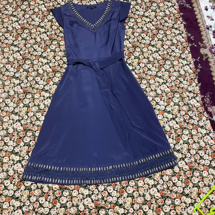 로라 애슐리 네이비 슬리브리스 원피스 7호