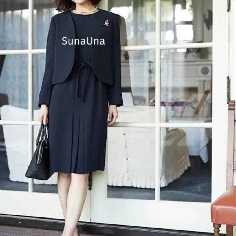 SunaUna (수나우나) [ 엄마 여성 수트/입학식 수트/졸업식 수트 ] [ 세탁 가능 ] 벨크로 플리츠 원피스