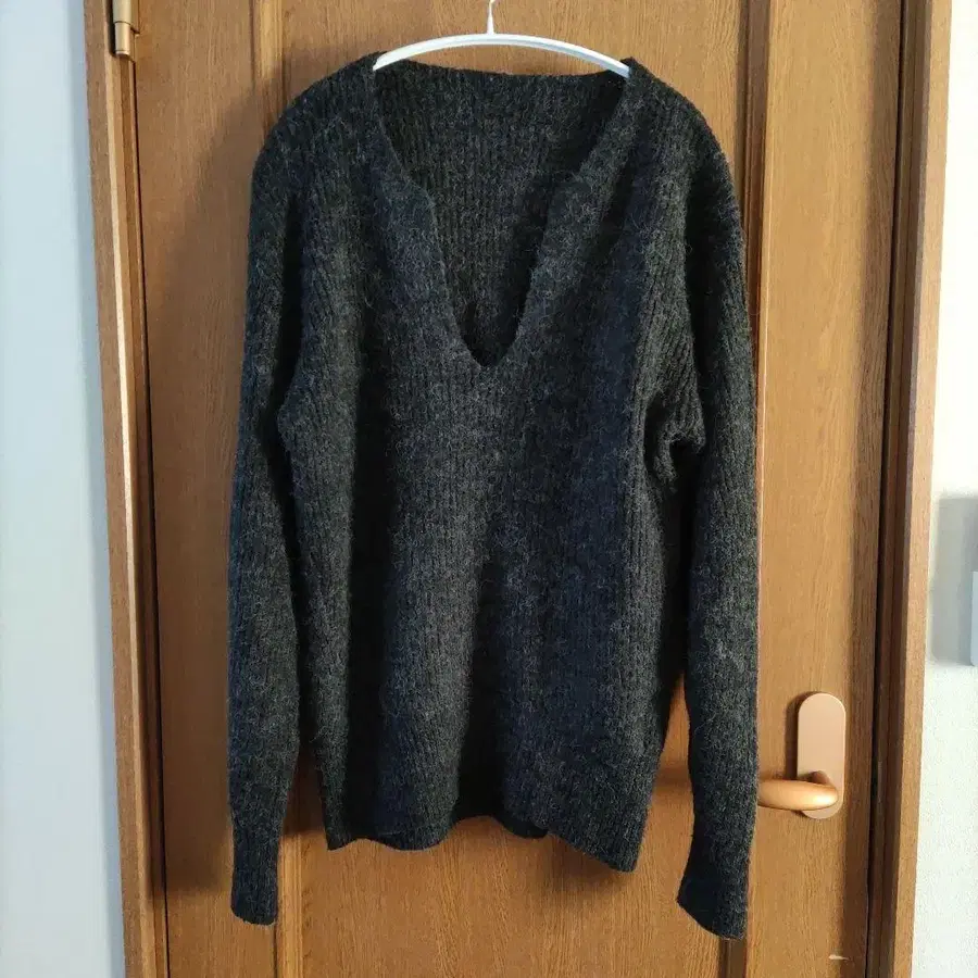 다크 그레이 V넥 니트 스웨터 긴팔