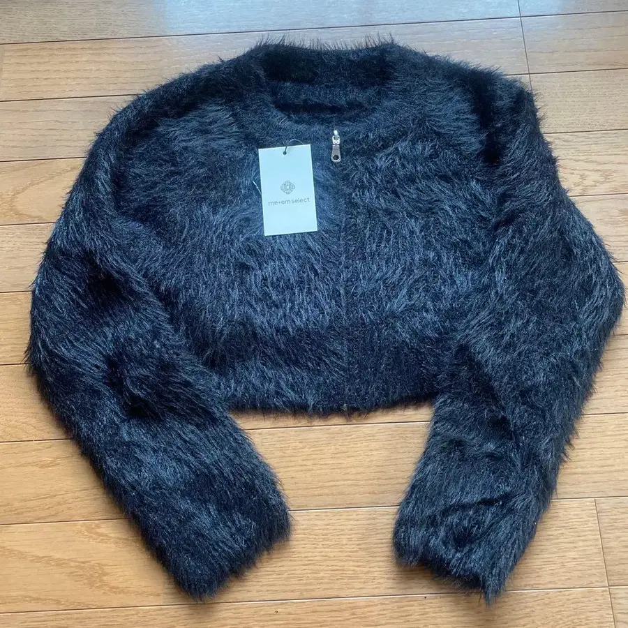 me+em select 블랙 퍼(fur)풍 크롭 상의