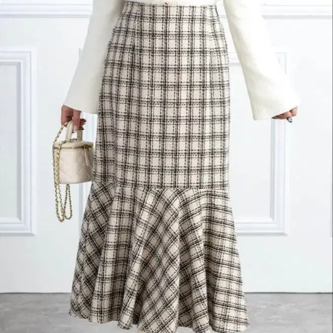 clear CLEAR BASIC 트위드 머메이드 스커트 체크 무늬