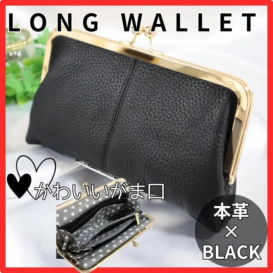 [ 가마구치가 귀여운 대용량으로 사용하기 쉬운 세련된 천연 가죽 장지갑 ]