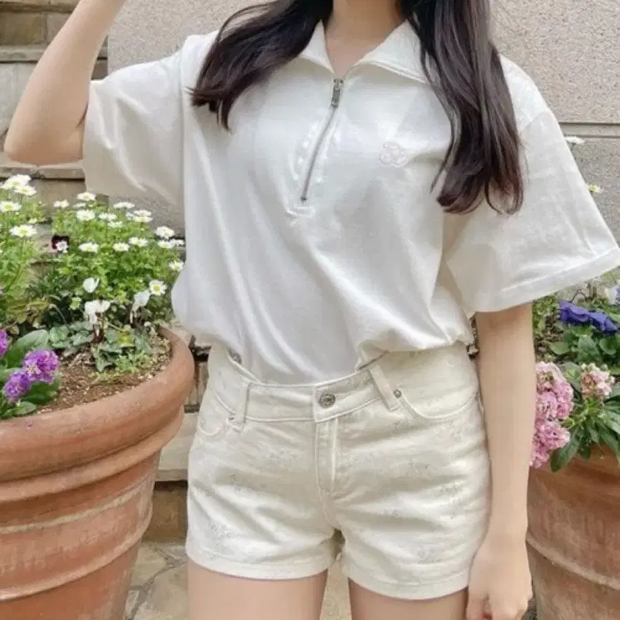 에피누 하프 지퍼 T셔츠 화이트 하트