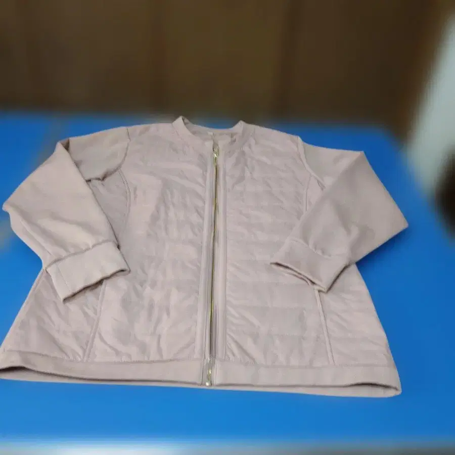 핑크 베이지 퀼팅 자켓 골드 지퍼 여성 L