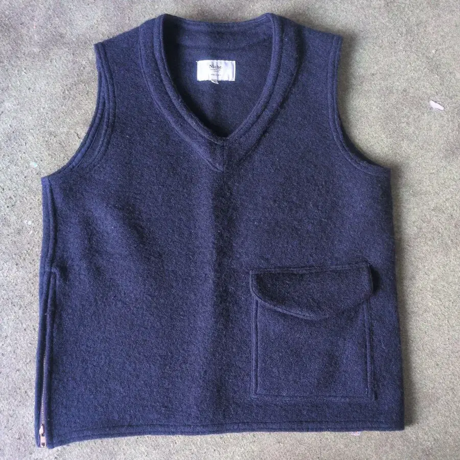 Niche. 다크 네이비 V넥 베스트 울 베스트
