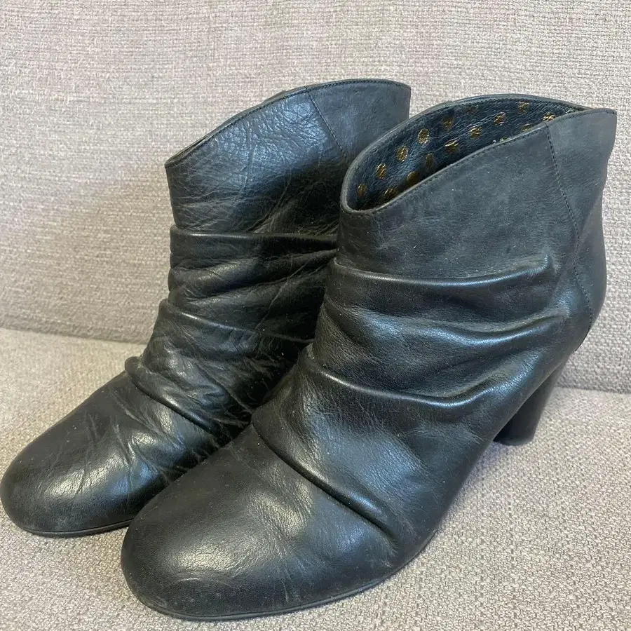 츠모리치사토 가죽 부티 블랙 중간 힐 24cm
