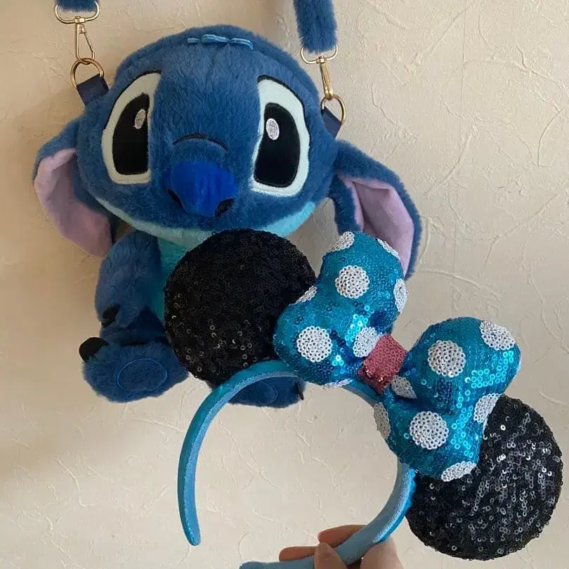 스티치 봉제 인형 백팩 숄더 미니 머리띠 포함