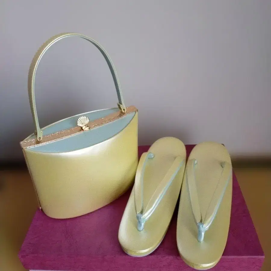 옐로우 컬러 x 연한 녹색 일본 의류용 백과 조리 세트 미사용