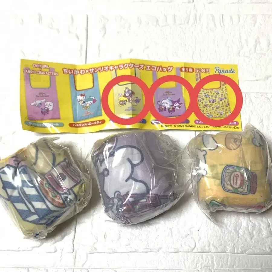 치이카와 x 산리오 에코백 가챠가챠 3개 세트