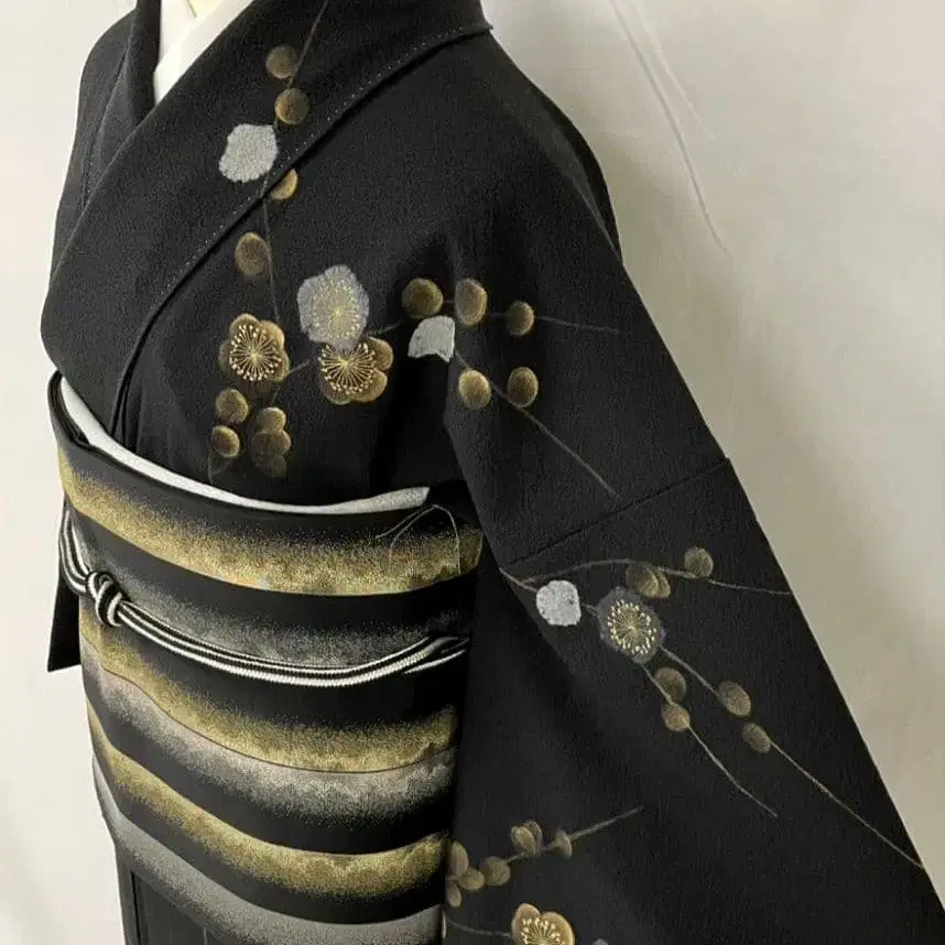 새상품급 순수 실크 이중 기모노 크레이프 원단 매실 패턴 호몬기 단품