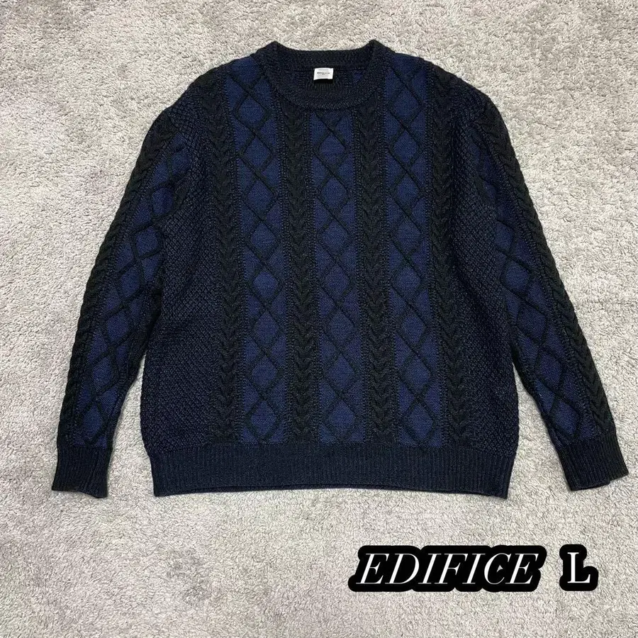 [ EDIFICE ] 케이블 짜임 스웨터 디자인 니트 네이비/블랙 L