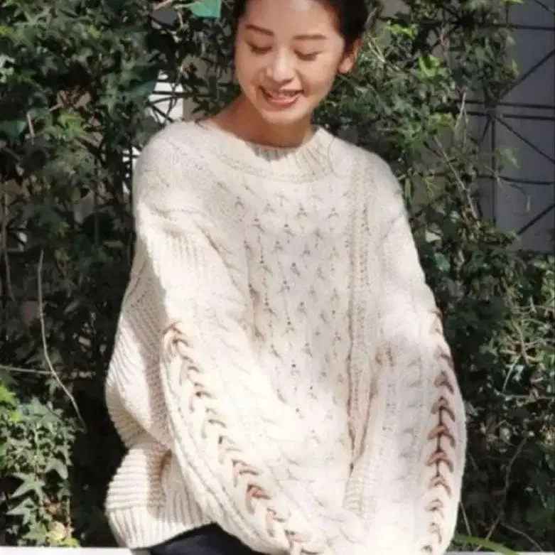 Ungrid 슬리브 레이스업 케이블 니트 스웨터