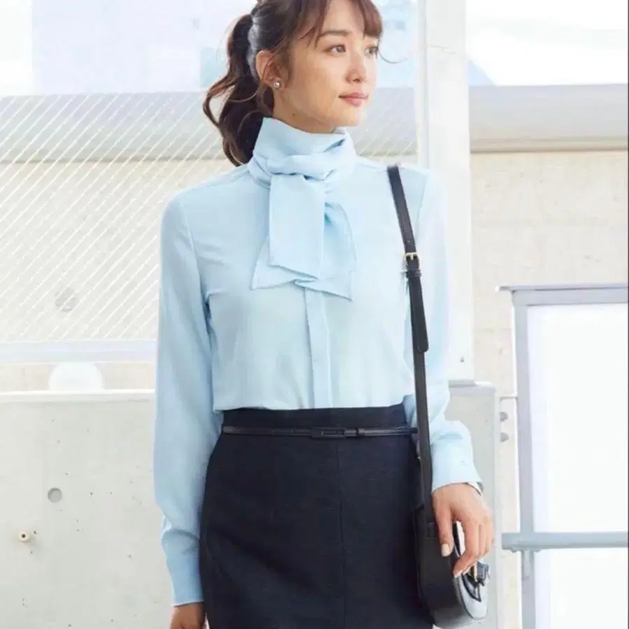 미사용 새상품 나라 까미체 섀도우 가는 스트라이프 보타이 긴팔 블라우스
