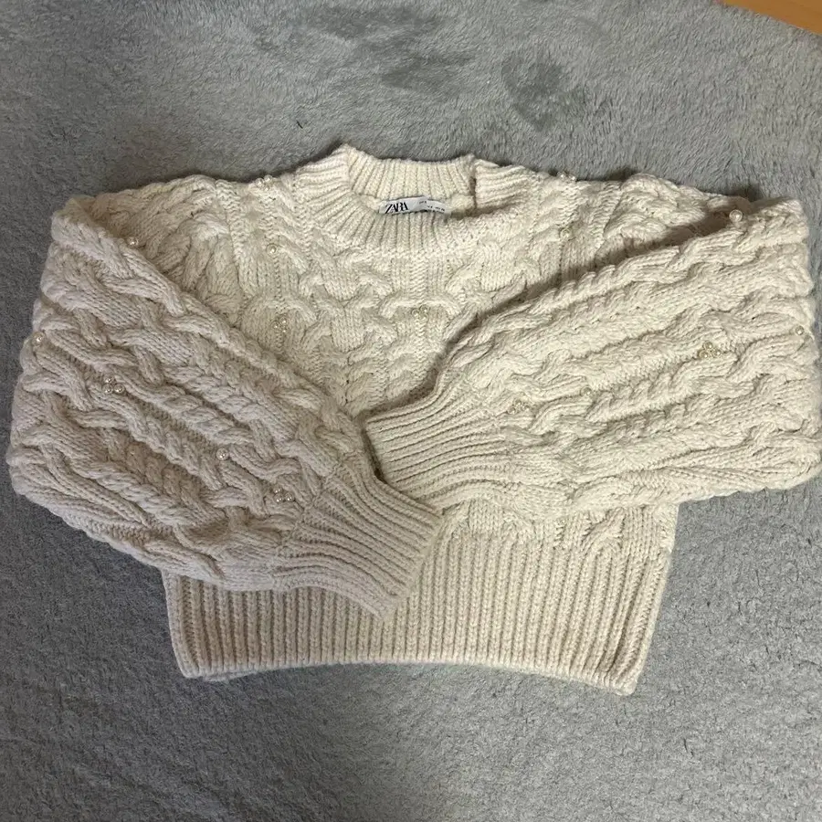 ZARA 크림색 케이블 짜임 니트 스웨터 펄 장식 포함