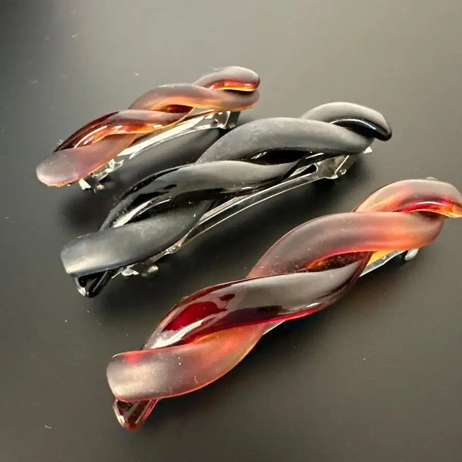 [헬프랑스] 블랙과 브라운 트위스트 헤어 클립 대소 3개 세트 프랑스제