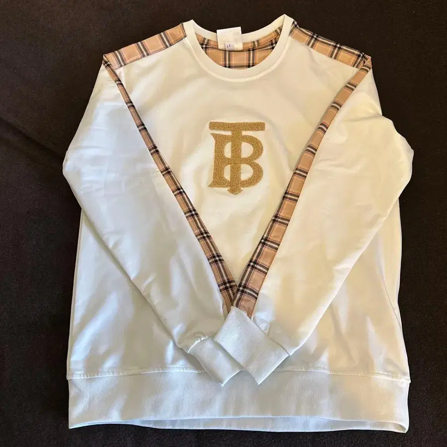 화이트 맨투맨 TB 로고 체크 무늬 소매 M