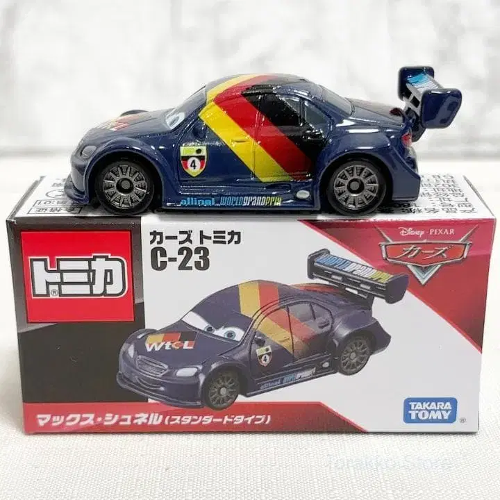 이번에 판매하게 된 상품은 카즈 토미카 [ C-23 맥스 슈넬 ( 스탠다드 타입 ) ]의 새상품 미개봉품입니다. 타카라토미의 해외 판매분을 현지에서 구매한 것입니다. 디즈니/픽사 영화 [ 카즈 2 ]에 등장하는 월드 그랑프리의 독일 대표 레이서 [ 맥스 슈넬 ]이 토미카로 등장합니다. 깊이 있는 보라색 네이비 바디에 독일 국기 색상 (블랙, 레드, 골드) 스트라이프가 돋보이는 쿨한 디자인입니다. 보닛과 사이드에 그려진 넘버 [ 4 ]와 스폰서 로고, 리어의 대형 윙 등 레이싱카 특유의 스포티한 디테일이 충실하게 재현되었습니다. 배송해 드리는 상품은 새상품 미개봉품을 정성스럽게 포장하여 익명 배송으로 안전하게 보내드립니다. [ 상품 사양 ] 제조사: 타카라토미 ( TAKARA TOMY) 상품명: 카즈 토미카 C-23 맥스 슈넬 ( 스탠다드 타입 ) 시리즈: 디즈니/픽사 카즈 [ 현품에 대하여 ] 새상품 미개봉 미사용품입니다 (사진 속 내용은 개인 소장 모델입니다). 본 상품은 타카라토미 아시아의 정품이며 뒷면에 현지 주의 사항 스티커가 부착되어 있습니다. [ 포장 배송에 대하여 ] 발송은 보상 포함 익명 배송으로 진행합니다. OPP 봉투나 에어캡으로 정성스럽게 포장하고, 눌림 방지를 위한 완충재가 들어있는 종이상자로 배송해 드립니다. [ 불량 시 대응 ] 만일 상품에 파손이나 결함이 있거나 설명과 다른 경우, 전액 환불 (배송비 포함)로 대응해 드립니다. 거래 평가 후라도 [ 구매 후 10일 이내 미사용 시 ]에 한하여, 반품 배송비 + 판매 수수료를 부담해 주시면 반품 대응해 드립니다. [ 보관 환경 ] 비흡연, 반려동물 없음 환경에서 보관하고 있습니다. 냄새나 얼룩 걱정은 없습니다. [ 관리 번호 ] 307 #토미카 #카즈토미카 #맥스슈넬 #카즈2 #픽사 #디즈니픽사 #TAKARATOMY #CARS #미니카 #월드그랑프리 #레이싱카 #독일대표