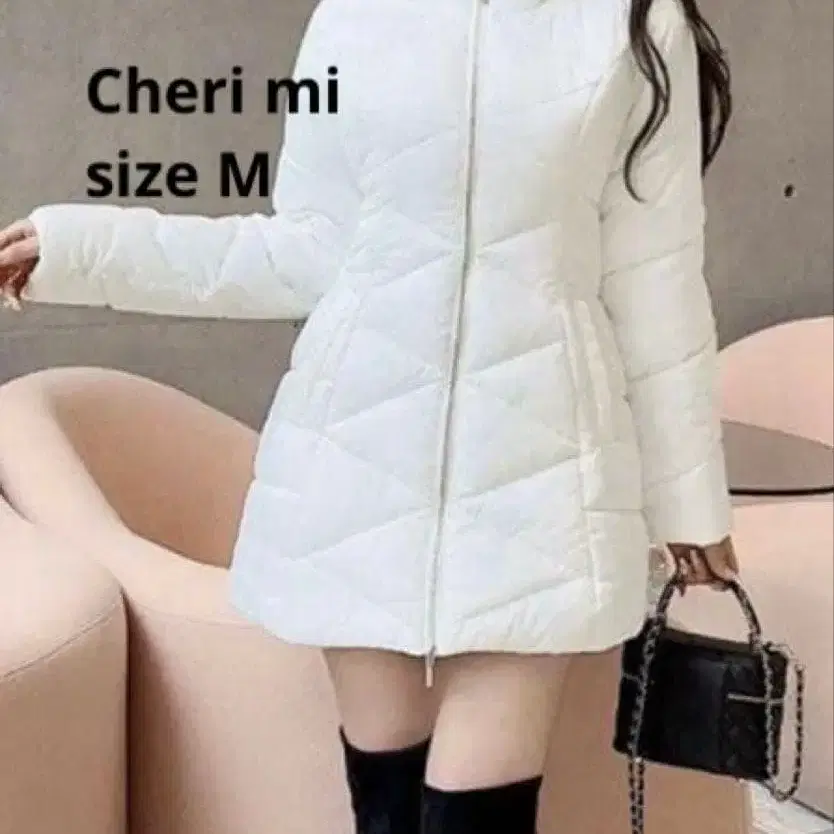 셰리미 후드 퍼 파이버 다운 롱 코트 화이트 Cheri mi