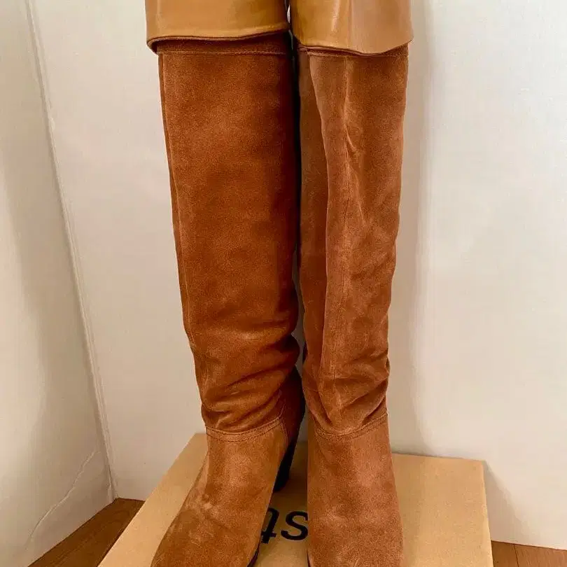 LOVE COULEUR 브라운 스웨이드 롱 부츠