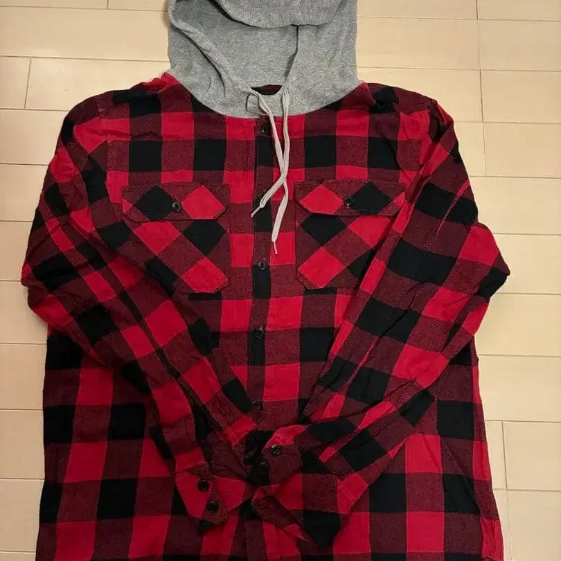 GLOBAL WORK 후드 부착 플란넬 셔츠