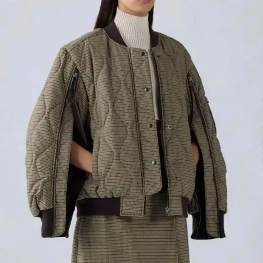 GU x rokh 퀼팅 블루종 자켓 체크 지퍼