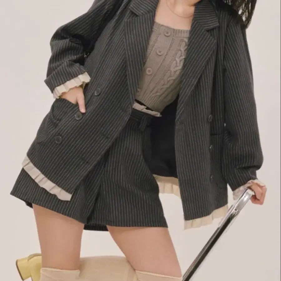 loin nuit 로완뉴이 프릴 레이어드 디자인 자켓 그레이