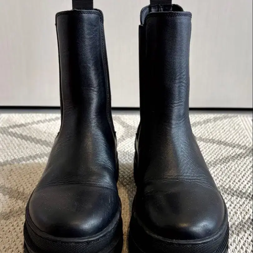 블랙 가죽 사이드 고어 부츠 트리픈 38