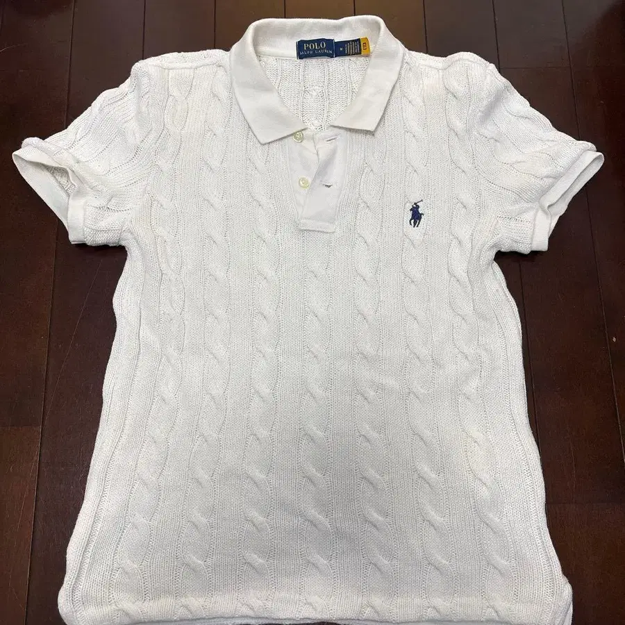 폴로 랄프로렌 반팔 케이블 니트 카라 부착 M 사이즈 화이트
