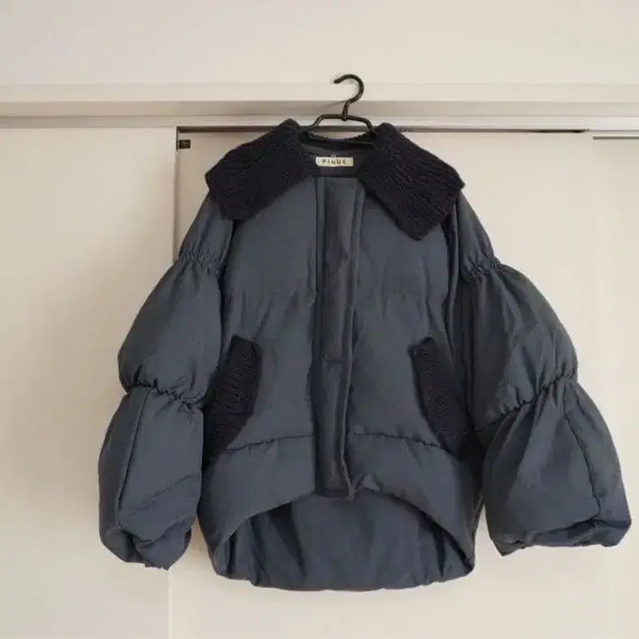 PINUE 네이비 볼륨 슬리브 다운 자켓