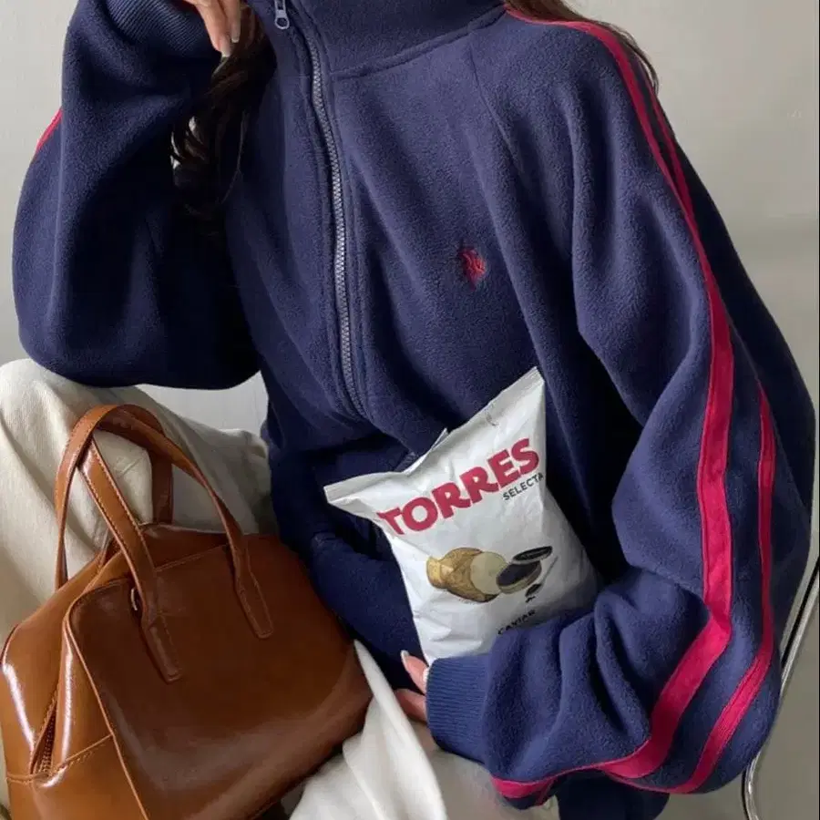 U.S. POLO ASSN. 라인 디자인 플리스 트랙 자켓