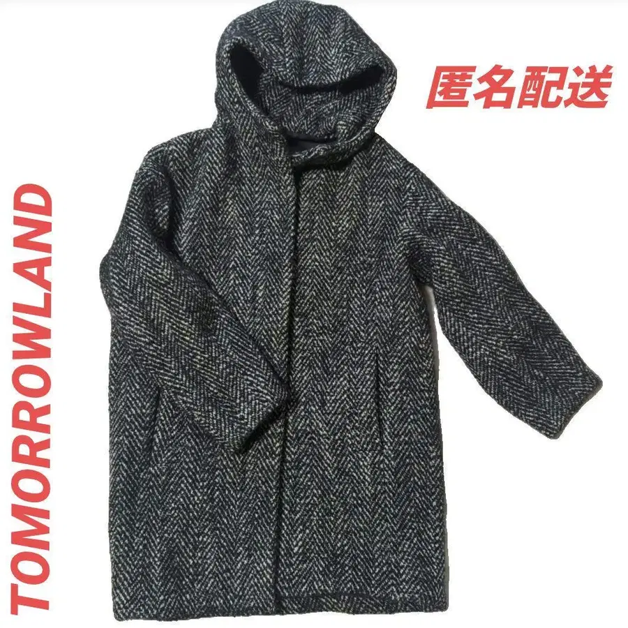 맥피 헤링본 무늬 후드 부착 코트 38 사이즈