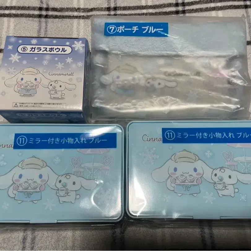 산리오 시나모롤 제일복권 4종 세트 시나몬 파우치 유리 보울