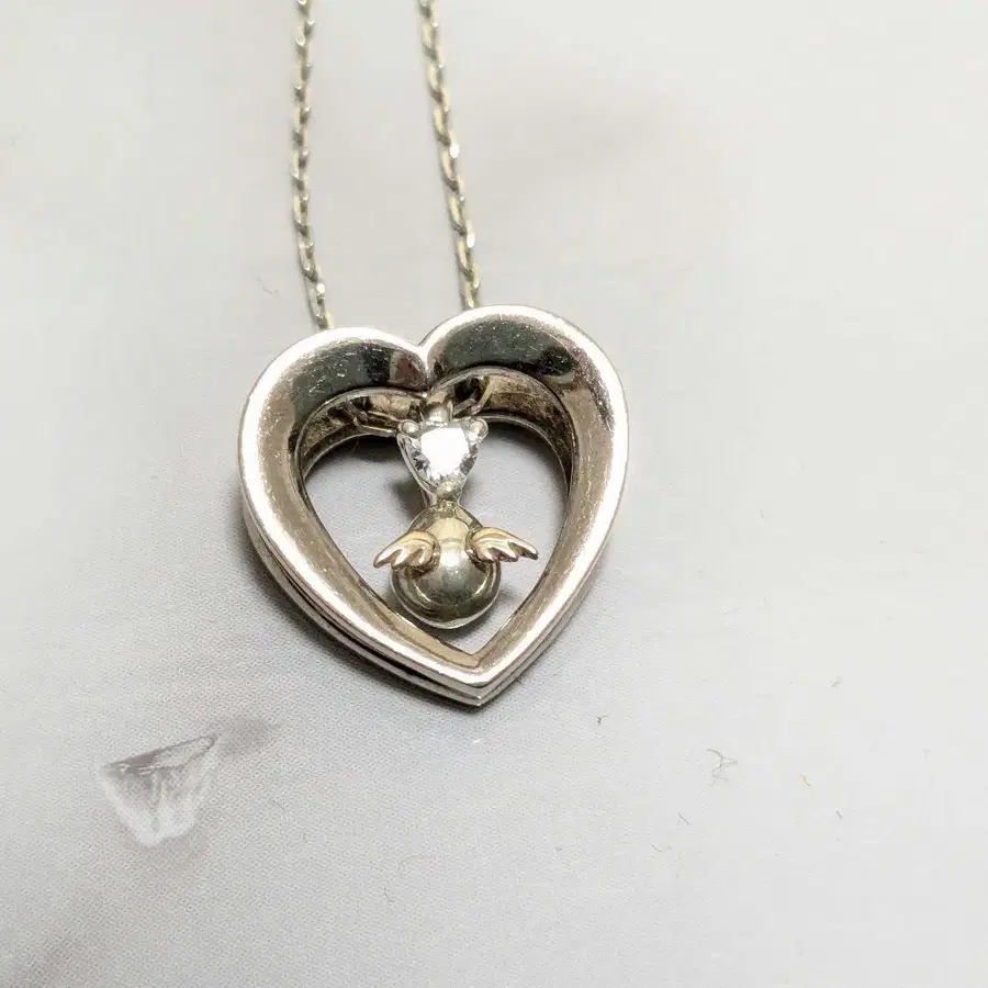 천사의 알 실버 K10 금 하트 날개 크리스탈 목걸이