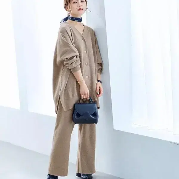 자동 번역되었어요. 원문보기베이지 색상의 가디건과 팬츠 셋업, 슬릿 디자인으로 스타일리시합니다.