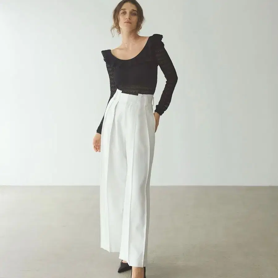 더욱이, 중간 바느질된 턱이 입체감을 만들어내, 와이드하면서도 깔끔한 실루엣으로 완성했습니다.