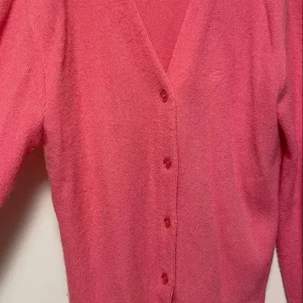 LACOSTE 핑크 니트 가디건 포인트 컬러