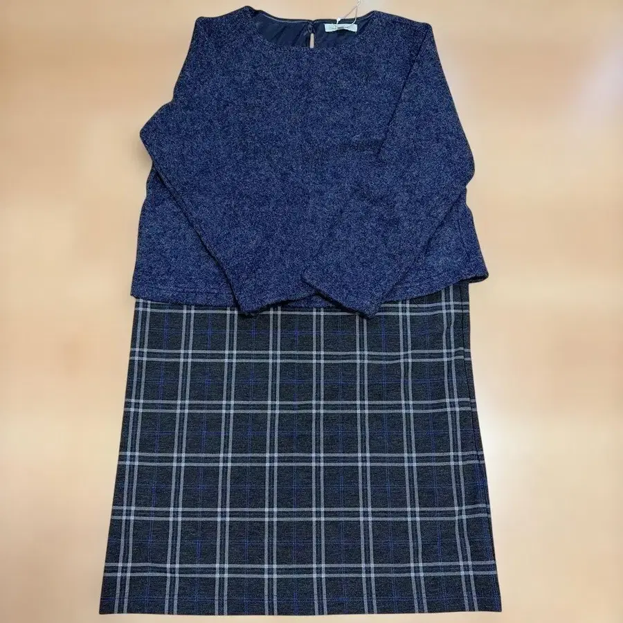 네이비 니트탑 체크 무늬 스커트 M 사이즈