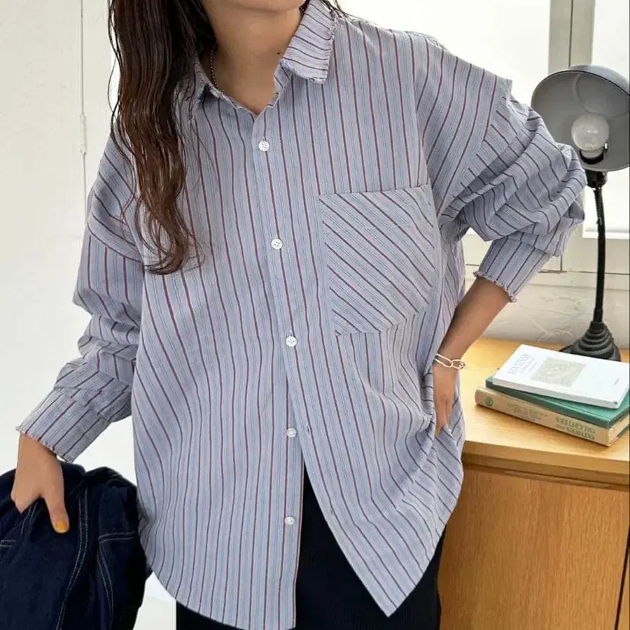DISCOAT 랜덤 스트라이프 프린지 오버 셔츠